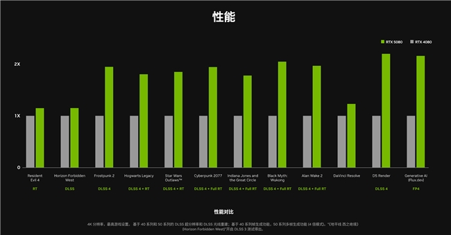 GeForce RTX™ 50 系列 GPU 搭载 NVIDIA Blackwell 架构,强大的 AI 算力,带来升级体验和更逼真的画面。NVIDIA DLSS 4多帧生成采用的全新帧生成 AI 模型速度提高了 40%,显存占用降低了 30%,与传统渲染相比,最多可将帧率提高 8 倍。