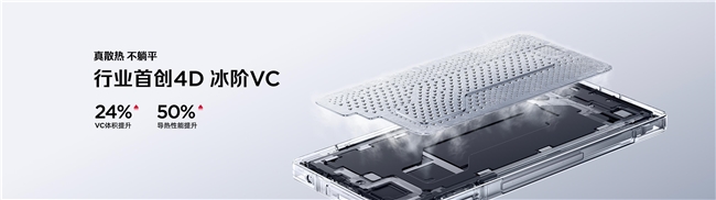 红魔11 Pro系列搭载行业首创4D冰阶VC,其体积相较前代提升24%,整体导热性能提升 50%;同时搭配电竞本级别的液态金属3.0与驭风4.0,再叠加创新的水冷技术,共同构建起“水冷+风冷+VC +液态金属”的四重散热闭环,全方位覆盖热量产生、传导、散发的各个环节,为手机高性能持续输出提供稳定保障。